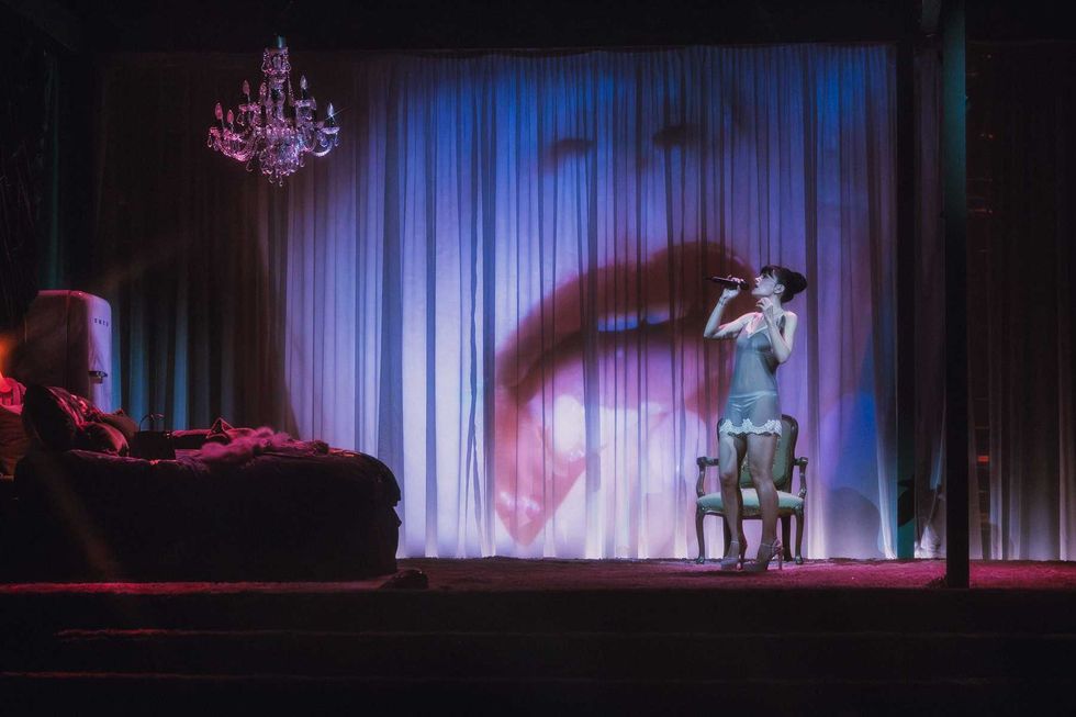 The show felt more like a Broadway play than a standard concert. The stage is built to resemble an apartment — a bed, pink fridge, rotary telephone, velvet chair and a series of vintage lamps are meticulously placed and thoughtfully moved throughout the show to detail the narrative of Allen’s story. The crowd is brought right into the singer's disillusionment, as she finds out the scathing details and inevitable spiralling of her husband’s extramarital affairs.