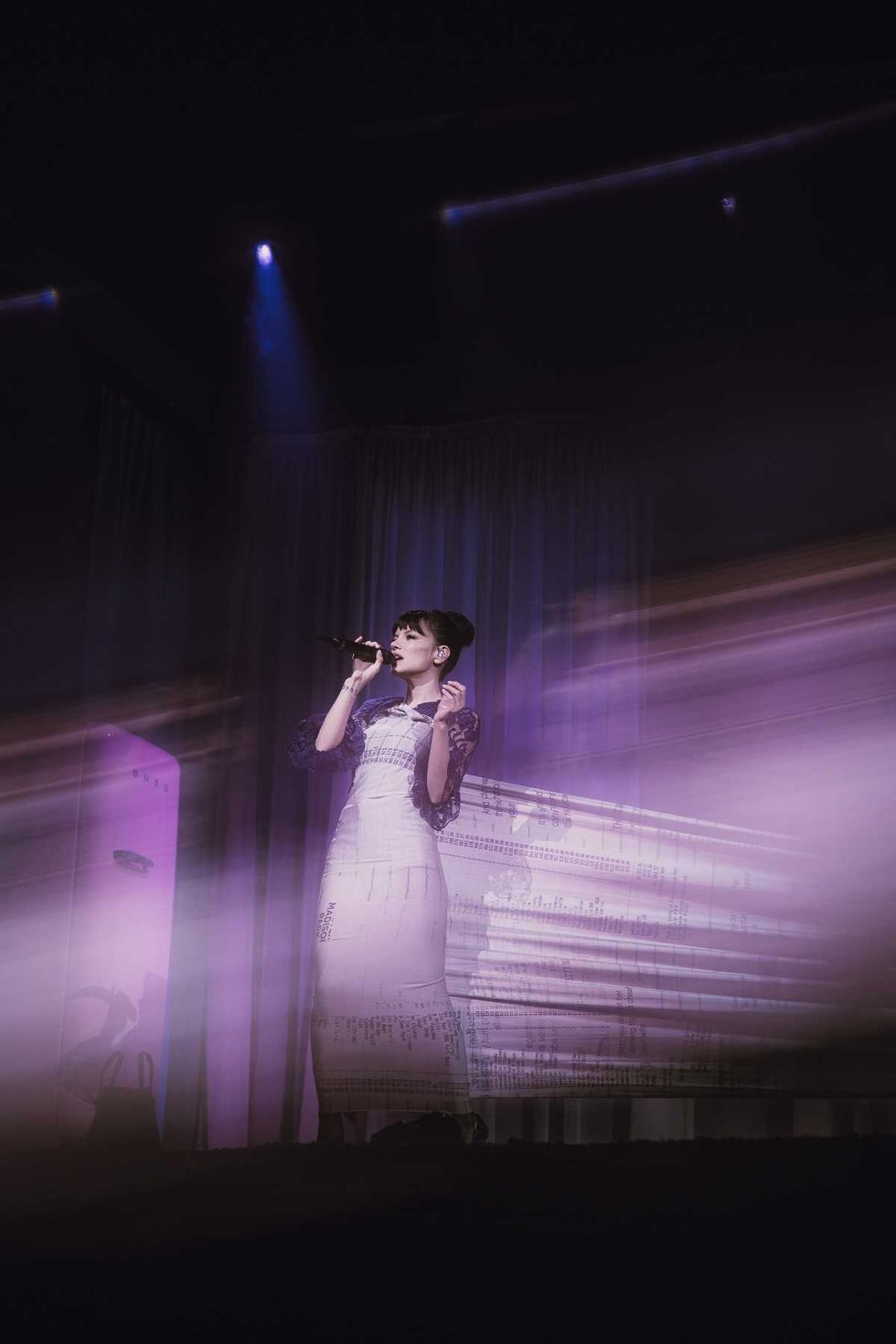 During “Ruminating,” moody visuals of Allen were projected onto the curtain, while she channeled frustration and confusion through s hyperpop-accented track. Later, she headed to a fridge — which shockingly worked well — and took a sip of water and a pass of her vape, before leading into the mellow electronic-infused “Relapse,” which found Allen anxiously pacing back and forth on stage, as if she just came to the shocking revelations in real-time.