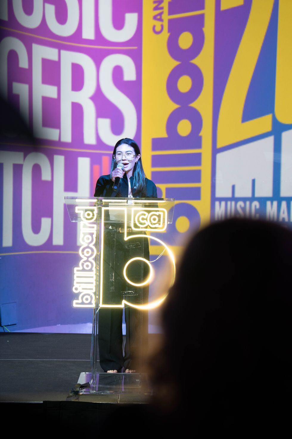Sonali Singh was then invited onstage to accept the International Manager Award. The honouree managed Punjabi music star Diljit Dosanjh for over ten years, helping guide his global breakthrough and record-breaking rise. Singh thanked Billboard Canada for the recognition and expressed that it was a marker of significance for her career. "This award, to me, means that I'm doing something," she said.
