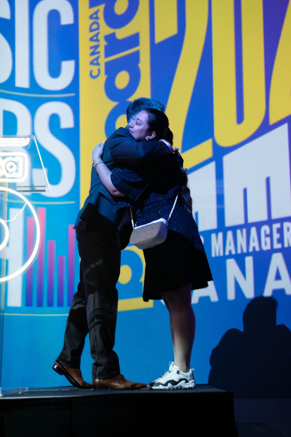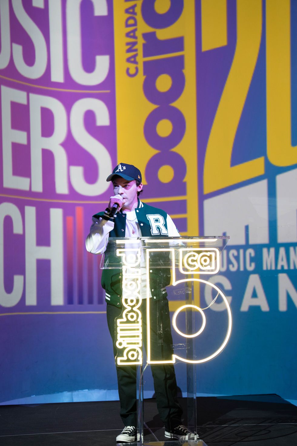 He introduced The Beaches to present the Billboard Canada Manager of the Year award to their manager Laurie Lee Boutet, which was prefaced by a speech from band member Jordan Miller. She reflected on how Boutet helped them navigate the major obstacle of being dropped from their label and offered a different paradigm: she didn't tell them the same things that every label did.