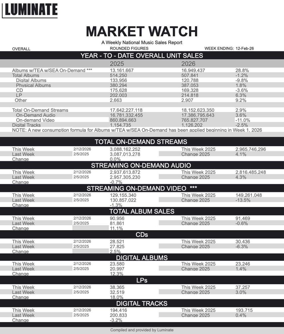Canadian Music Sales Report: Week Ending February 12, 2026