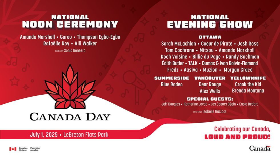 The national noon ceremony will officially kick off the celebrations and will be broadcast on CBC, CBC News Network, CBC Gem, CBC Radio, the CBC News YouTube channel and CBC News streaming channels as well as ICI RDI, ICI TÉLÉ and ICI TOU.TV. Performers here will include Amanda Marshall, Garou, Thompson Egbo-Egbo, Rafaelle Roy and Alli Walker, with Sonia Benezra hosting.