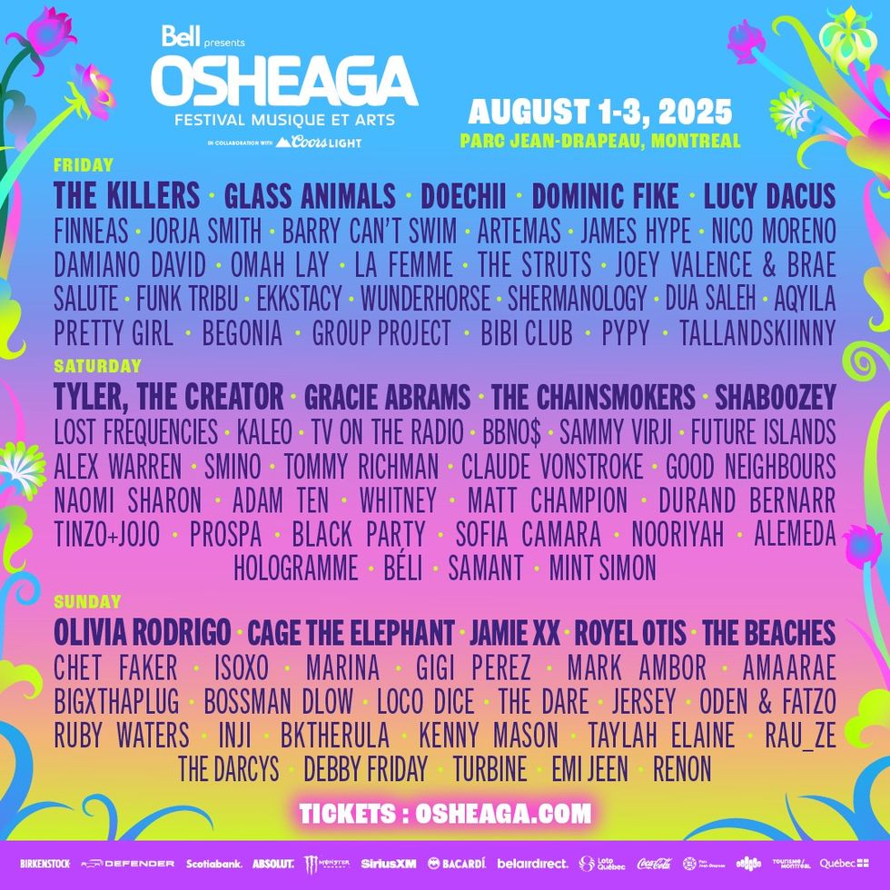 Osheaga Gets Olivia Rodrigo, Tyler, The Creator, The Killers, Gracie Abrams, Doechii and More for 2025 Edition
