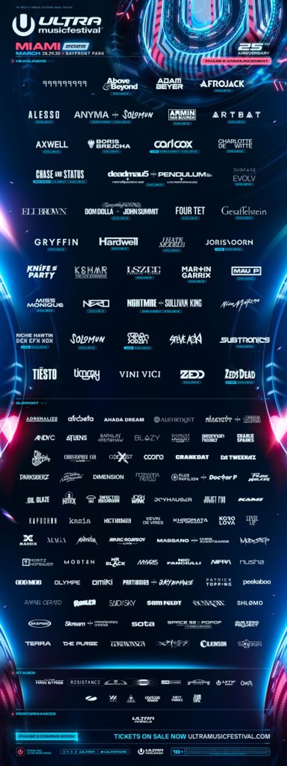 Ultra 2025 will also feature Zedd, Nero, Charlotte de Witte, Four Tet, Lsdream, Miss Monique, Subtronics, Mau P, Eli Brown, Artbat and many more.